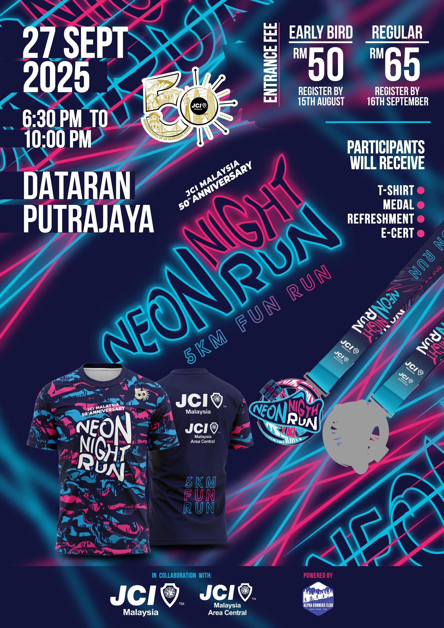 Mark your calendars for 27 September 2025, from 6:30 PM to 10:00 PM, as we paint Putrajaya with neon colors!